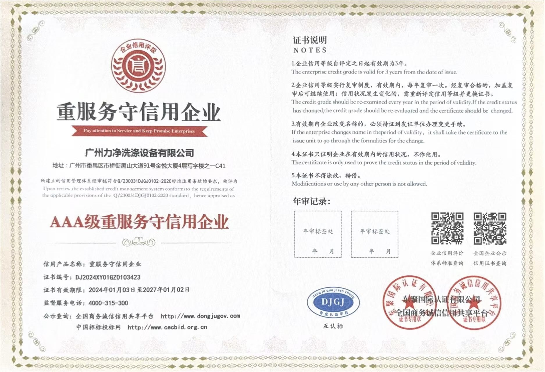 AAA級(jí)重合同守信用企業(yè) AAA級(jí)重質(zhì)量守信用單位 AAA級(jí)誠信經(jīng)營示范單位 AAA企業(yè)信用等級(jí)證書