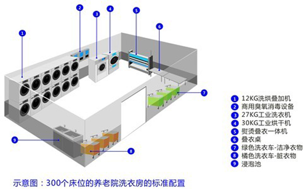 目前在我國很多養(yǎng)老院機構(gòu)還是沒有能力配備自己的洗衣房,很多都是把衣物外包給外面的洗滌公司洗滌、這些洗滌廠不僅沒有進行分類洗滌并且無法自動消毒,老人皮膚病、感染病等易互相傳染;很多洗滌廠為了節(jié)約成本都是把從不同行業(yè)中收集回來的衣物統(tǒng)一洗滌,比如酒店的床單被套布草也跟衣物一起混合洗滌。洗滌完了之后,衣物應(yīng)該使用烘干機烘干,床單被套要使用燙平機熨燙烘干,所以為了讓養(yǎng)老院的老人們住的安全,穿的舒服健康,必須要給養(yǎng)老院配置自己的洗衣房。